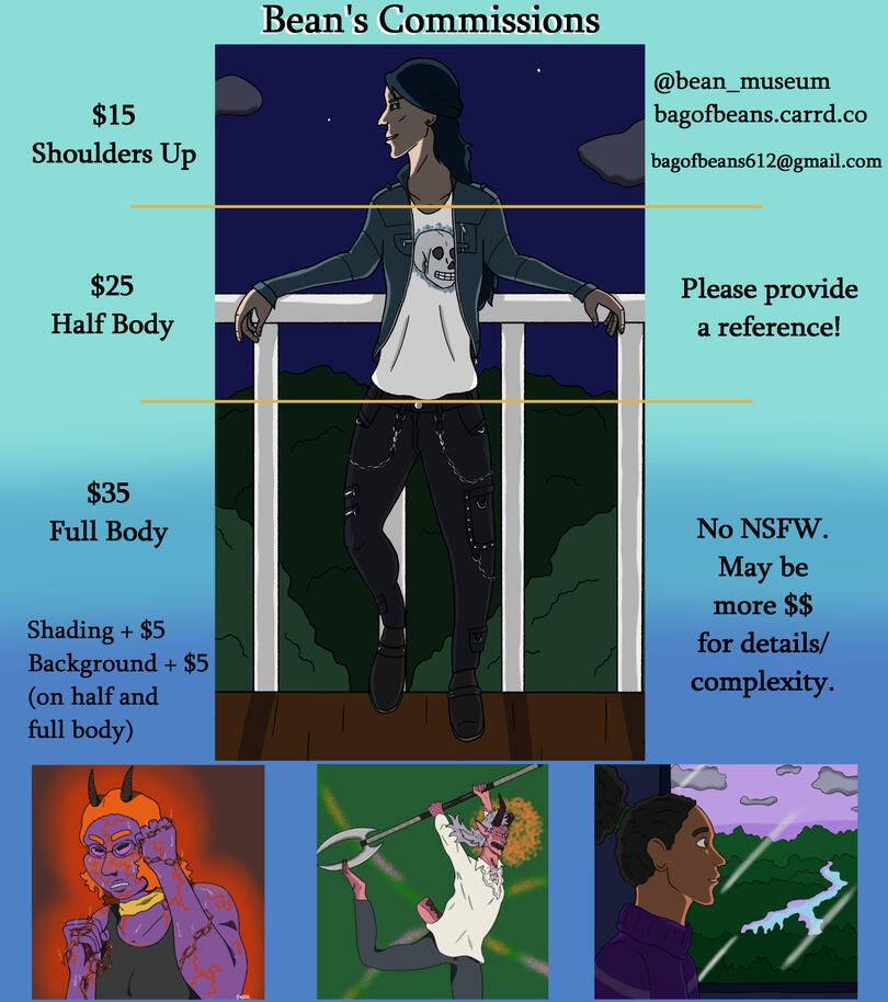 i'm kate, i also go by bean. i am a writer and a hobbyist artist. have a look at some of my work.